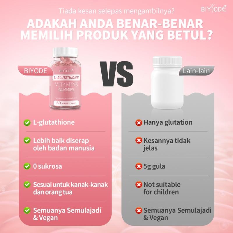 Jadikan BIYODE L-Glutathione Gummies sebahagian daripada rutin kecantikan harian anda – kulit cerah, sihat dan bersinar kini dalam genggaman anda!