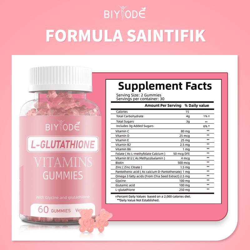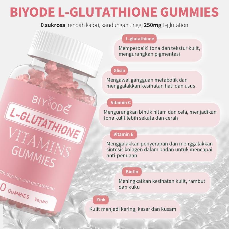 BIYODE L-Glutathione Gummies – Suplemen Pemutih & Pelembap Kulit Semulajadi